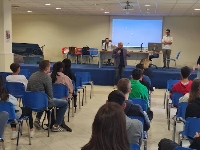 TERAMO – Riprende l’attività di educazione sanitaria dell’Ordine delle Professioni Infermieristiche di Teramo rivolta agli studenti delle scuole superiori. Una delegazione dell’OPI, composta dal presidente Cristian Pediconi, dal vicepresidente Andrea Fini, dal tesoriere Luca Ruggieri e dal segretario Stefano Bellini, venerdì mattina ha incontrato alunni e docenti di due classi dell’istituto alberghiero Di Poppa-Rozzi di Teramo. La particolare lezione tenuta dagli infermieri dell’OPI ha trattato diversi temi sanitari, soffermandosi in particolare sulla gestione della crisi epilettica in ambito scolastico.