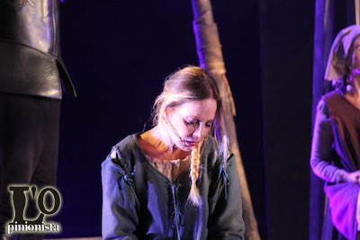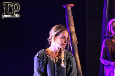 Asciuttezza nell’avvicendarsi dei momenti, dall’entrata di Matteuccia in scena al susseguirsi delle accuse, alle querule e intimorite testimonianze delle donne che da lei ricevettero consigli e aiuti in contrasto con la veemenza volgare di coloro che accusano. Esangui figure prive di volontà nel rendere giustizia, il Cardinale e i frati che lo attorniano silenziosi, sfondo di un’azione nella quale hanno certo avuto, indirettamente parte – la predicazione di Bernardino da Siena deve aver influito in questo senso – nella cruenta conclusione del processo. E quelle presenze mute accrescono ancor più il pathos che procede inesorabile verso la condanna. Questo, il racconto e la suggestione esemplare della rappresentazione condotta con mano ferma da Lamanna.