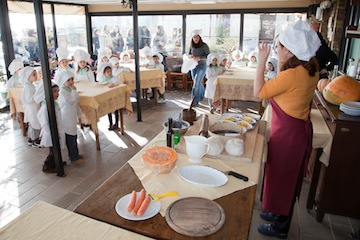 Dallo scorso anno collabora al percorso educativo il Ristorante “Al Vecchio Teatro” che ha assunto un ruolo importante arricchendo il percorso non solo di “laboratori ai fornelli” ma proponendo un vero e proprio viaggio simbolico nelle tradizioni culinarie locali.