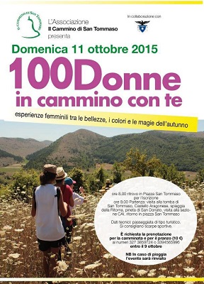 ORTONA (CH) – In concomitanza con la Giornata Nazionale del Camminare (www.giornatadelcamminare.org) l’ Associazione “Cammino di San Tommaso” organizza l’evento “100 Donne in Cammino con te”, una passeggiata esperienziale con cui le tante donne che fanno parte della nostra comunità voglionodeclinare il cammino al femminile presentando durante la giornata esperienze, racconti e aneddoti che legano indissolubilmente lo stile di vita di chi cammina all’universo femminile.