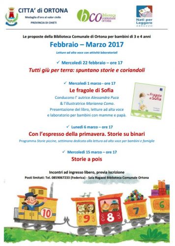 ORTONA (CH) – “Cerco la penna dappertutto , ma è scomparsa” è l’appuntamento di letture ad alta voce, promosso dalla Biblioteca Comunale di Ortona, per bambini da 8 anni e famiglie che si terrà mercoledì 15 febbraio alla Sala Rotary.