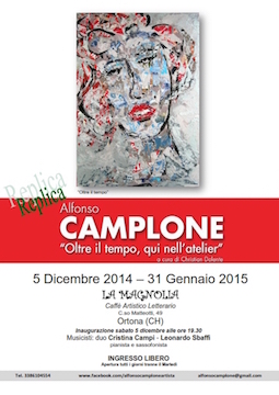 ORTONA (CH) – Venerdì 5 dicembre alle ore 19.30, presso il Caffé artistico-letterario La Magnolia, in Corso Matteotti 49, Ortona, “entreranno in scena” i personaggi dell’artista pescarese Alfonso Camplone. Si tratta del progetto artistico “Oltre il tempo, qui nell’atelier” curato dal critico d’arte Christian Dolente, tenutosi lo scorso marzo negli spazi espositivi di SpazioPiù, location “pulsante del vivere umano” di Pescara.