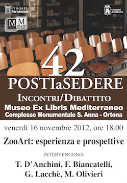 Nell’ambito di tale ciclo di ppuntamenti,venerdì prossimo si terrà un incontro-dibattito dal titolo ZooArt: esperienza e prospettive