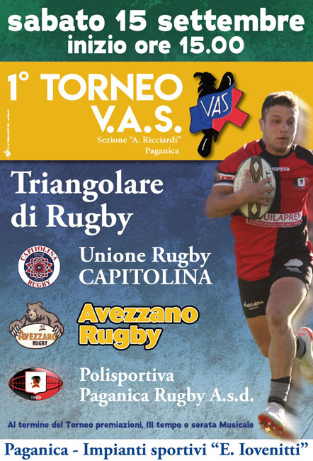 Dopo la presentazione dei giocatori e l’intervento del coach Sergio Rotellini l’incontro è stata occasione anche per promuovere il “1° Torneo V.A.S.”, Triangolare che si terrà sabato 15 settembre alle ore 15,00 presso gli Impianti Sportivi “Enrico Iovenitti” di Paganica. Le squadre che si incontreranno saranno, oltre al Paganica Rugby, l’Unione Rugby Capitolina e l’Avezzano Rugby.