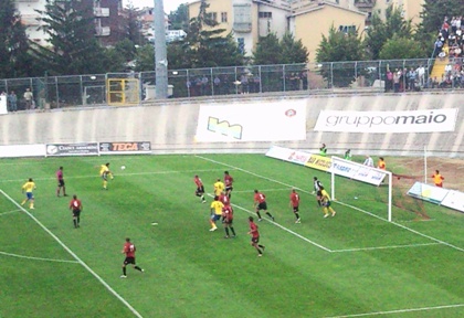 LANCIANO – Imprevebile derby. Spettacolo sugli spalti con le tifoserie in festa e coreografie da entrambe le curve, un pò meno in campo in una gara che ha vissuto solo a tratti di emozioni. I biancoazzurri gettano al vento la possibilità di portare a casa il bottino pieno dopo essersi trovati dal ’17 esimo minuto di gioco con il vantaggio e un uomo in più. Infatti dopo il primo quarto d’ora “pirotecnico” si è vista in campo una squadra paga del risultato che ha badato di più alla gestione del pallone e a tener bassi i ritmi, piuttosto che aggredire l’avversario per ipotecare al più presto la gara. Strategia che ha penalizzato i biancoazzurri che hanno subito le reti del pari sul finale di tempo con due disattenzioni difensive e nelle uniche significative azioni realizzate dai padroni di casa. Eccessiva sicurezza dei propri mezzi? Forse può essere proprio questo il problema di una squadra che ha uno dei migliori organici della categoria… Perchè il derby resta pur sempre il derby e i favori del pronostico non sempre sono sufficienti per conquistare il successo… imprevedibilità del derby…
