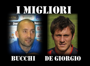 Bucchi 7,5 Finalmente si è sbloccato il bomber che tutti aspettavano. Incorna di prepotenza un cross di Petterini. Il Bomber c’è!