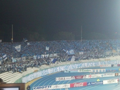 18m partita interrotta perché tra la nebbia e i fumogeni non ci sono le condizioni per proseguire il gioco, alcune zone infatti non si vedono, in particolare l’area biancoazzurra