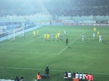36m doppia azione dei biancoazzurri prima un traversone di Bonanni crea scompiglio nell’area scaligera poi su susseguente corner Olivi stacca di testa su tutti ma il pallone è di poco alto sopra la traversa