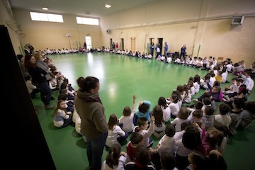 CHIETI – Questa mattina le azzurre Michela Zanotto, Bianca Del Balzo, Alessandra Bassanese e Alessandra Di Lisciandro hanno incontrato oltre 500 bambini delle scuole elementari del 3° Circolo di via Amiterno e via Pescara, a Chieti. È stata l’occasione ideale per promuovere la disciplina della pallamano e la importante gara di domani sera, Italia – Turchia, in programma proprio al Pala Santa Filomena. I piccoli partecipanti hanno rivolto le proprie domande alle azzurre, per soddisfare alcune curiosità riguardanti la pallamano ed effettuare qualche passaggio con le giocatrici della Nazionale.