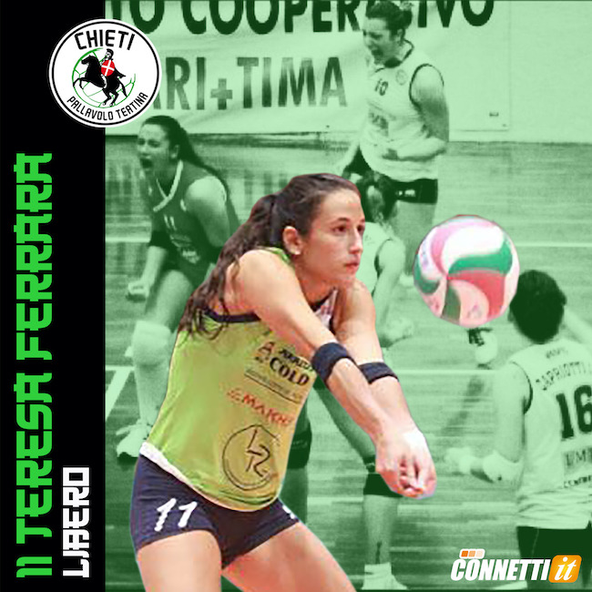 CHIETI – La Connetti.it Pallavolo Teatina annuncia il primo tassello del roster per la stagione 2020/2021. Si tratta di Teresa Ferrara, marchigiana di San Benedetto del Tronto e 29 anni da compiere il prossimo 25 ottobre. È un libero la cui esperienza e il cui valore tecnico emergono con chiarezza solo scorrendo il suo curriculum: sette anni a Pagliare, protagonista di una spettacolare scalata dalla serie D fino alla B1; poi due anni a Forlì, prima in A1 e poi, l’anno successivo, in A2, con la vittoria del campionato e della Coppa Italia; dopo il fallimento della società romagnola, Teresa ha militato tra le fila di Orvieto, Trescore Balneario, Aqui Terme e Ostiano, sempre in B1. L’arrivo a Chieti significa per lei riavvicinarsi finalmente a casa e trovare un allenatore da lei affrontato sinora solo da avversario: