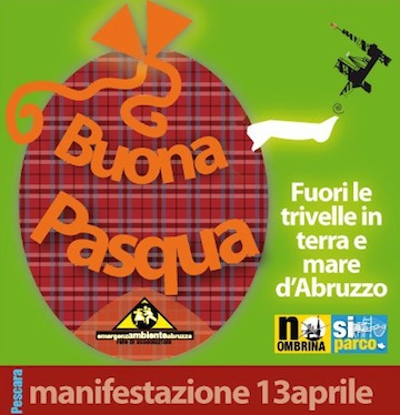 Nell’augurare la Buona Pasqua ai nostri lettori, ricordiamo la manifestazione del 13 aprile a Pescara in difesa del nostro mare che vorrebbero far diventare un vero e proprio distretto minerario per gli idrocarburi … un’altra ingiustificabile nefandezza perpetrata ai danni dell’ambiente.