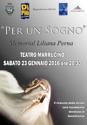 CHIETI – Sabato 23 gennaio alle ore 20.30 si alzerà il sipario su memorial “Per un Sogno” organizzato dall’Associazione Dimensione Danza e dalla OpportUnity Onlus. Questo spettacolo che è già alla seconda edizione sarà dedicato a Liliana Perna, insegnante e ballerina talentuosa scomparsa prematuramente nell’ottobre del 2014.