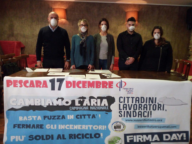 PESCARA – Domenica 17 Dicembre 2017, in piazza Sacro Cuore a Pescara,l’Associazione Pescara Punto Zero ha organizzato una raccolta firme nell’ambito della Campagna nazionale “Cambiamo l’aria”,promossa dal Movimento LEGGE RIFIUTI ZERO per l’economia circolare.I cittadini che aderiranno potranno così sottoscrivere le proposte a livello nazionale e comunale a favore della qualità dell’aria.