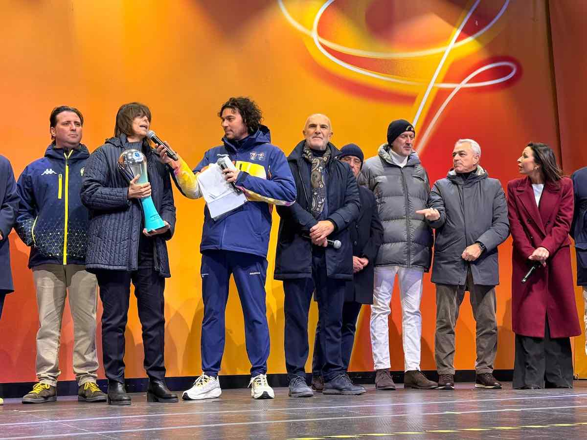 Sul palco anche Francesca Sansone, segretario della Divisione Serie A Femminile Professionisti, che ha mostrato al pubblico la Supercoppa Italiana femminile, in vista della finale Juventus‑Roma dell’11 gennaio allo stadio Adriatico.