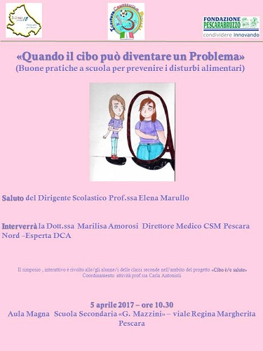 ola Secondaria “G.Mazzini” a Pescara, si terrà il simposio «Quando il cibo può diventare un Problema», nell’ambito del progetto di educazione alimentare che viene approfondito nelle classi seconde “cibo è/e salute”.