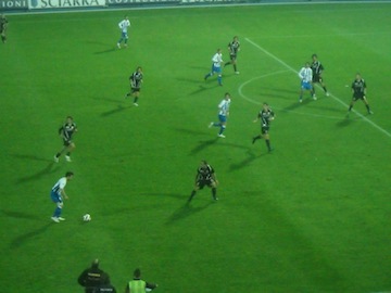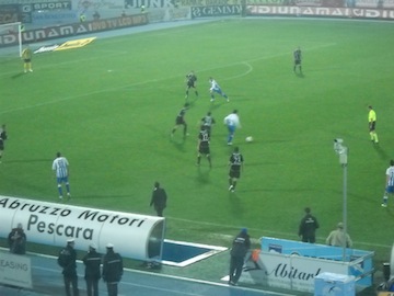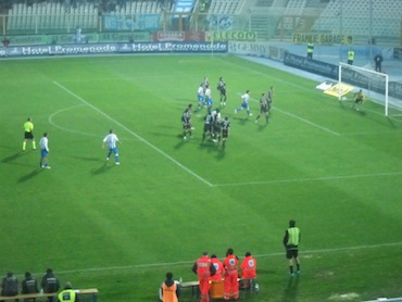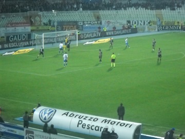 DUE SCHIAFFI MORTALI … – L’ingresso della possente punta classe 90′ riesce nell’intento di scardinare la difesa del Pescara che fino a quel momento non aveva mal figurato, e in 3 minuti confeziona le azioni che stendono il Pescara: al 22′ da corner provocato da un errato colpo di testa di Nicco, la traiettoria lunga viene raccolta di testa da Lupoli che confeziona l’assist perfetto per l’attaccante Bosniaco che colpisce sotto porta. Quindi al 25′ una sponda aerea trova solo nell’area piccola Cristiano che con un morbido pallonetto fredda in uscita Pinna, apparso un pò incerto nell’occasione.