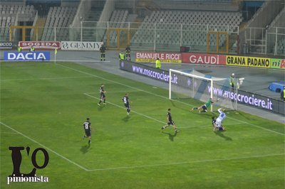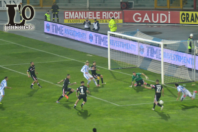 CAPUTO FA TREMARE LA DIFESA BIANCAZZURRA – Dopo una buon predominio territoriale della squadra abruzzese nella prima parte di gioco è il Bari a iniziare a macinare gioco e far correre le maglie biancazzurre. Precise geometrie a centrocampo e un Caputo ispirato hanno fatto la differenza. Al 35′ qualche momento di apprensione in area biancazzurra con Caputo, che ha due buone chance per il diagonale in area, ma viene chiuso dalla difesa avversaria. Nell’occasione proteste dei giocatori baresi, che contestano un tocco di mano di Zuparic in area, ma il giocatore aveva le braccia attaccate al corpo. Due minuti dopo ancora la punta centrale ospite con una conclusione a giro in area, che si spegne di poco a lato alla destra di Fiorillo. Dall’altra parte al 38′ bello spunto sulla destra di Melchiorri, che si beve il suo marcatore, ma il suo cross in area non trova nessuna maglia biancazzurra pronta a ribadire in rete. Un minuto dopo Fiorillo si esibisce in un elegante quanto provvidenziale dribbling al limite dell’area del portiere del Pescara, che evita guai allontanando la sfera.
