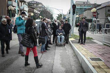 PESCARA – I responsabili di Carrozzine determinate, fra le associazioni più attive sul fronte della lotta contro le barriere architettoniche, ha fatto fare ai consiglieri delle commissioni Infrastrutture e Politiche Sociali una nuova esperienza “empatica” sullo stato dell’accessibilità cittadina. Dopo la riunione in carrozzina delle due Commissioni congiunte e l’attraversamento di mezza città da parte di consiglieri e amministratori, oggi le due Commissioni si sono ritrovate con Claudio Ferrante, motore dell’associazione, sulla strada parco, incrocio via Cadorna a verificare lo stato dei luoghi, insieme anche all’assessore alle Politiche Sociali Giuliano Diodati.