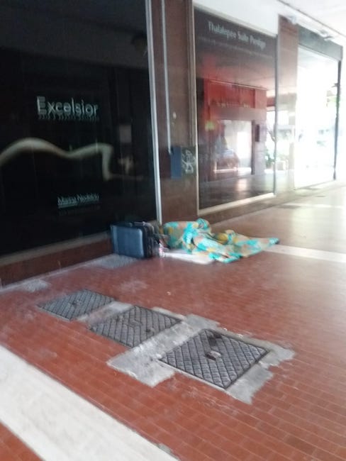 Ora il bivacco c’è sia nelle ore notturne che in quelle diurne, visto che i clochard si svegliano solo intorno alle 10.30-11, restando sino a quell’ora con le proprie coperte e cartoni dinanzi alle vetrine dei negozi, ostacolando addirittura il passaggio dei pedoni. E, una volta in piedi, prima di raccogliere le proprie cose e di spostarsi, non si fanno scrupolo di espletare i propri bisogni dinanzi alle stesse vetrine dei portici, com’è accaduto stamane con un commerciante costretto ad armarsi di interi barattoli di varichina per tentare di contrastare il puzzo del rivolo di urina che si è ritrovato dinanzi al proprio negozio, episodio peraltro regolarmente ripreso e fotografato dagli stessi commercianti.