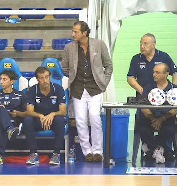 Provo a indovinare, è la prima volta contro … Mario Patriarca. Si, anche se non mi piace immaginare Mario … contro di noi. Preferisco pensare ad una sfida in famiglia, una sfida tra fratelli, una sfida dove ci si affronta magari anche con qualche durezza ma dove alla fine ci vede uniti in un abbraccio vero e senza rancori. Mario è tanta parte della storia sportiva di Pescara. È stato il più grande calcettista italiano, un uomo alto quasi due metri dalle doti tecniche straordinarie. E poi quando é diventato un allenatore ê stato capace di trasferire tutta la sua esperienza e la sua classe in un gioco originale che ha fatto scuola. Il 4-0 è il suo DNA ed è giusto che continui ad applicarlo sempre. È uno come Zeman, che ho avuto modo di conoscere bene, uno che mette il bel gioco al di sopra di tutto, anche del risultato. Mario è un maestro del futsal, uno che insegna futsal. Le nostre strade si sono al momento separate ma quando Patriarca deciderà di tornare a casa sua, noi lo accoglieremo a braccia aperte.