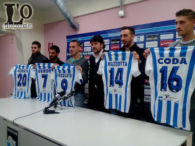Il primo a rilasciare le dichiarazioni alla stampa è il difensore centrale Andrea Coda: “ho una grande motivazione – dice Coda – sono stato contattato anche da altre persone di Genova, che hanno amicizia col mister, addirittura i primi di dicembre, ed io ero ancora con alle prese con l’infortunio al ginocchio tutto ciò mi ha fatto molto piacere ed aprire gli occhi. Io, non ancora sapevo bene com’era la situazione da parte mia non era in preavviso di spostarmi a gennaio, dopo un infortunio serio. Ma, dal momento che la trattativa con il Pescara, si è fatta in modo insistente e concreta ho accettato subito, purtroppo come sappiamo tutti l’ultima settimana di mercato è sempre quella decisiva, io dovevo risolvere certe incombenze con la Sampdoria, è ciò non mi ha permesso di arrivare prima qui a Pescara; da parte mia non c’è stato mai un tentennamento sia ben chiaro, credo molto nel progetto. I ragazzi, mi hanno detto che se venivo mi sarei divertito, questo è un gruppo eccezionale, sono molto forti e vanno a tremila; vengo qui, con estrema umiltà mi metto a disposizione del mister, sia che faccia parte degli undici o dei venticinque il mio apporto ci sarà sempre”.