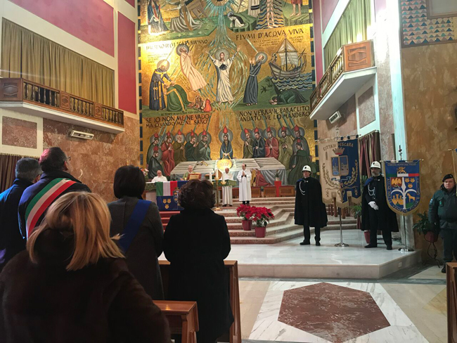 Alle ore 10.00 si è tenuta una messa di suffragio nella chiesa dello Spirito Santo, alla presenza di autorità civili e militari. Subito dopo è stata deposta una corona al monumento dedicato alle vittime delle Foibe,che si trova nella Piazza Giuliano Dalmati.