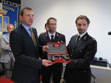 Alla cerimonia di consegna delle armi hanno preso parte il sindaco di Pescara Albore Mascia, il questore Paolo Passamonti, il vicequestore Mario Della Cioppa, il Comandante della Guardia di Finanza Maurizio Favia, il Comandante provinciale dei Carabinieri Marcello Galanzi, il Comandante del Corpo Forestale dello Stato Guido Conti, il Direttore della Scuola di Controllo del Territorio Marco Volpe e il Comandante della Polizia municipale Carlo Maggitti con l’intero Corpo schierato.