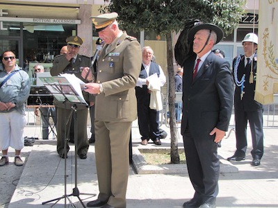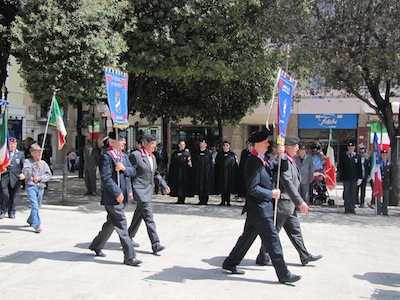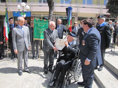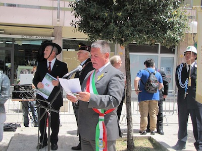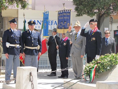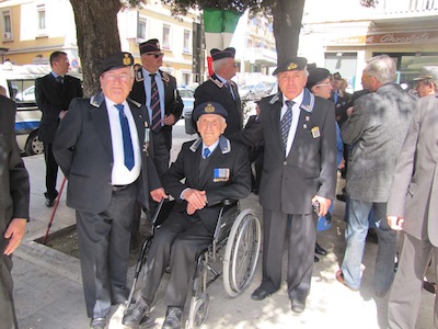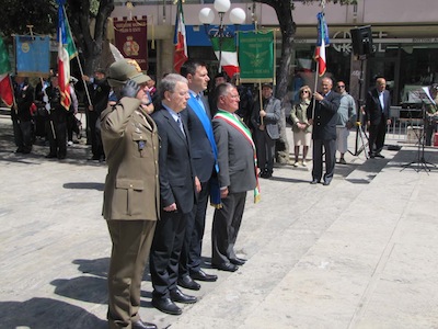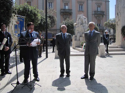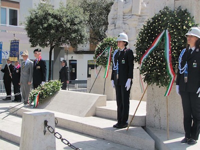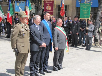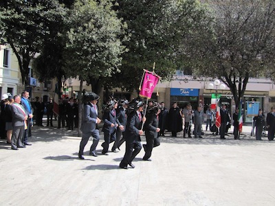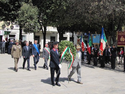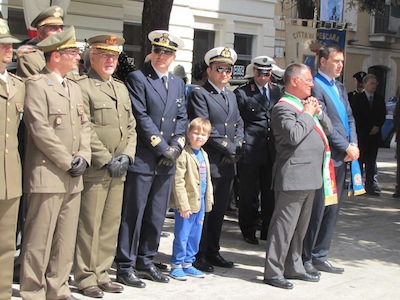 Ma soprattutto erano presenti decine di cittadini ed ex combattenti che con gli occhi lucidi dall’emozione hanno ascoltato le note del Silenzio e dell’Inno di Mameli, seguendo ogni passo della giornata.Nel suo intervento Foschi ha ricordato i nostri due Marò, Massimiliano La Torre e Salvatore Girone, oggi costretti a vivere nel Consolato italiano in India ed ha lanciato un appello ,a nome di tutta la città, al nuovo Governo affinché si prodighi per l’immediata liberazione e il ritorno in patria dei nostri due militari. Sino a quando gli stessi non torneranno in Patria, finalmente liberi, gli uomini delle Istituzioni continueranno a indossare il fiocco giallo, a ricordare quella detenzione e per esprimere la nostra indignazione.
