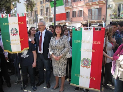 PESCARA – Si è svolta ieri a Pescara la Cerimonia promossa per celebrare il 152° Anniversario della fondazione dell’Esercito Italiano. Hanno preso parte alla giornata le massime autorità militari della città, oltre al consigliere delegato Armando Foschi agli assessori alla Gestione del Territorio Marcello Antonelli e ai Problemi della Pesca Antonio D’Intino, al presidente della Provincia di Pescara Guerino Testa, al Presidente della Circoscrizione Porta Nuova Piernicola Teodoro, al Presidente della Camera di Commercio Daniele Becci, e alle Associazioni Combattentistiche e d’Arma, oltre agli studenti del Liceo classico ‘D’Annunzio’ accompagnati dalla Dirigente Luciana Vecchi, agli studenti del Liceo Marconi, accompagnati dal dirigente Angelo Lucio Rossi, e ai bambini delle elementari di via Cecco Angiolieri.