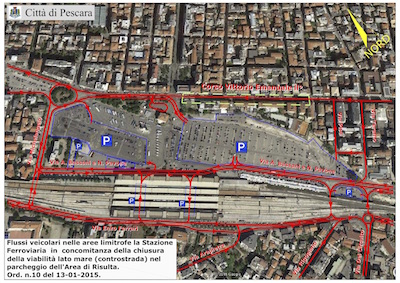 “Si tratta di un intervento di pianificazione della mobilità cittadina che ha già registrato una sensibile fluidificazione del traffico veicolare sulle arterie collegate già immediatamente dopo avere rimosso la rotatoria posta all’incrocio con via Teramo – spiega l’assessore a Lavori Pubblici e Mobilità Enzo Del Vecchio – In questi giorni sono in via di completamento i lavori riguardanti la sostituzione di alcuni tratti di asfalto sulla viabilità alternativa, l’apposizione della segnaletica orizzontale e verticale nonché azioni per migliorare l’accessibilità ai parcheggi sull’Area di Risulta.La novità comporta una riorganizzazione del traffico veicolare in una parte della Città particolarmente delicata per l’elevata presenza di traffico e auto, mobilità che procede soprattutto in direzione parcheggio dell’Area di Risulta, come confermano i rilievi dei flussi veicolari che in questo periodo vengono svolti nel programma sulla “Sicurezza Stradale”.Riflessi importanti sulla viabilità riguarderanno Piazza della Repubblica per effetto della rimozione della controstrada, che comporterà l’eliminazione di quel traffico veicolare che ha richiesto l’impianto semaforico all’incrocio con Corso Vittorio Emanuele e il cui spegnimento consentirà un flusso continuo da parte del traffico oggi presente, in misura molto ridotta, proprio su Corso Vittorio Emanuele in direzione sud-nord”.