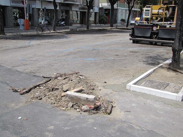 L’area è stata chiusa alle auto per consentire lo svolgimento dell’intervento, partito nonostante la pioggia del mattino; gli operai infatti, stanno effettuando la sostituzione dei cordoli che delimitano le corsie di marcia e di sosta, molti dei quali ormai divelti o comunque demoliti sotto i continui colpi delle auto. Nella giornata di oggi si passerà alla ricostruzione del massetto della pavimentazione oggi disseminata di buche e avvallamenti con notevoli disagi per gli automobilisti che entrano per lasciare la propria auto nei relativi stalli.