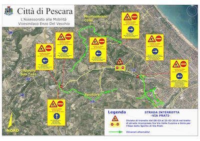 Per Pescara Colli: deviazione per Spoltore su Statale 16 bis.
