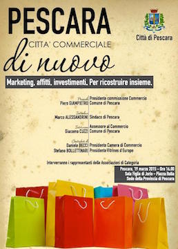 PESCARA – Mercoledì 18 marzo ore 11,30 presso la Sala Giunta del Comune di Pescara si terrà la conferenza stampa sulle iniziative relative al Centro Commerciale naturale che saranno al centro di un incontro pubblico giovedì 19 marzo presso la Sala Figlia di Iorio della Provincia. All’appuntamento parteciperanno l’assessore al Commercio Giacomo Cuzzi e il presidente della Commissione Consiliare Commercio Piero Giampietro.