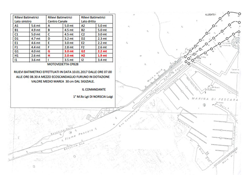 nza emessa ieri, lunedì 9 gennaio,dalla Capitaneria di Porto dispone il divieto di entrata e di uscita dal porto di Pescara per le grandi imbarcazioni a causa delle condizioni dei fondali , del maltempo e delle conseguenti forti mareggiate.