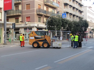 “Temporaneamente – ha ancora spiegato l’assessore Fiorilli – gli automobilisti che percorrono corso Vittorio Emanuele, in direzione sud-nord, giunti all’altezza di corso Umberto, non possono più svoltare a sinistra per accedere al parcheggio-biglietteria di piazza della Repubblica, ma devono per forza dirigersi sulla rotatoria di via Michelangelo, tornare indietro in direzione nord-sud e svoltare a destra in piazza della Repubblica. Ovviamente durante tutta la durata dei lavori sarà sempre consentito e garantito il transito dei pedoni sui marciapiedi esistenti. Tale disciplina resterà in vigore per almeno i primi 20 giorni, un mese, quindi con l’impresa e l’Ufficio Mobilità provvederemo a organizzare il cantiere mano a mano che le opere andranno avanti, con l’obiettivo di riconsegnare alla città l’asse già per Pasqua”.