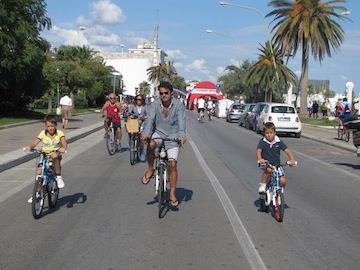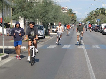 PESCARA – Si è svolta ieri, con successo, l’iniziativa Bike to Coast – Chiuso per bici, promossa dalla Regione Abruzzo e che ha visto la piena partecipazione anche dei Comuni di Pescara e di Montesilvano. Dalle 9 del mattino, chiuso al traffico veicolare il litorale nord, da via Galilei, a Pescara, sino via Marinelli, a Montesilvano, sino alle 13, e poi di nuovo, a partire dalle 15, via Leopoldo Muzii sino al ponte del mare, centinaia di cittadini hanno letteralmente invaso lo spazio lasciato vuoto dalle vetture, intere famiglie hanno approfittato della giornata di sole per una bella pedalata in compagnia. E intanto un’altra folla di bambini ha assaltato il Villaggio dei Gonfiabili in piazza Primo Maggio, intrattenendosi con il teatrino dei burattini, o con il Ludobus dinanzi allo stabilimento delle Naiadi e, ancora, con il Villaggio dello Sport allestito in piazza Salotto e a Montesilvano. A vigilare sul corretto svolgimento della giornata sono stati 20 agenti della Polizia municipale, al comando del maggiore Paolo Costantini, e le 20 unità volontarie della Protezione civile, coordinate da Angelo Ferri.