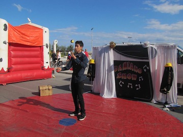 città, è arrivato il Ludobus, l’atelier del colore, con cavalletti giganti, tavolozze e colori a disposizione dei bambini; poi pedalò, trottola gigante, trampoli, canestri, e ancora l’Angolo Morbido, con i tappetoni per i più piccoli su cui gattonare e infine i Giochi in legno, giochi artigianali costruiti con materiale povero, biliardini mini ping-pong, mini-golf e altre attrazioni. Il Cabaret music show ha animato l’area antistante la Nave Cascella, con spettacoli di giocoleria, animazione, 4 gonfiabili di varia misura, 2 pupazzi giganti che si sono intrattenuti con i bambini e la scuola di ciclismo ha allestito un mini-percorso scuola.