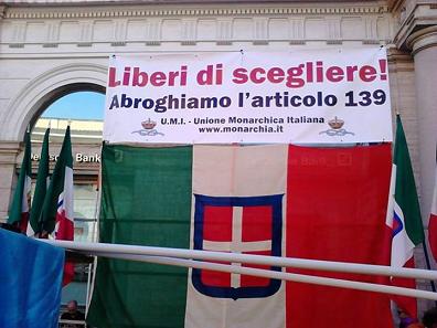 PESCARA – Sabato 27 giugno dalle ore 10 alle ore 19 in Piazza Sacro Cuore a Pescara, ci sara’ un gazebo dell’unione monarchica italiana per illustrare alla cittadinanza l’iniziativa nazionale per l’abrogazione dell’ antidemocratico art. 139 della costituzione in aperto contrasto con l’art.1 con cui e’ scritto che la sovranita’ appartiene al popolo mentre l’art. 139 dice che la forma repubblicana non puo’ essere oggetto di revisione costituzionale.