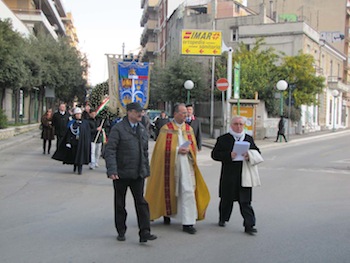 Alle 10 è iniziata la funzione religiosa presso la chiesa dello Spirito Santo, officiata dal parroco Don Giorgio Campilii in una chiesa gremita come non mai da oltre un centinaio di fedeli, e Don Giorgio ha ricordato che per due religiosi italiani vittime delle Foibe è in corso il processo di beatificazione. A chiudere la funzione religiosa è stato Mario Diracca, Presidente dell’Associazione esuli Venezia Giulia-Dalmazia, il quale ha ricordato il