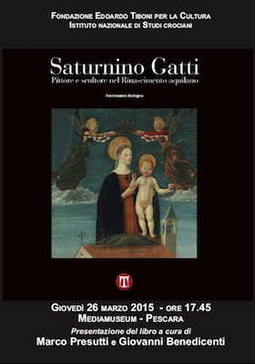 PESCARA – Giovedì 26 marzo alle ore 18 al Mediamuseum di Pescara il prof. Marco Presutti e il prof. Giovan Battista Benedicenti presenteranno il saggio di Ferdinando Bologna, “Saturnino Gatti. Pittore e scultore nel rinascimento aquilano” edito dalla Textus.