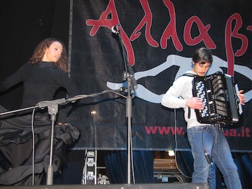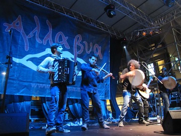 negli ultimi anni sta conoscendo un successo straordinario, specie tra i più giovani. Alle 18 in punto sono saliti sul palco i componenti degli AllaBua, una formazione nata negli anni ’90, sei artisti provenienti dai vari paesi del Salento con la voglia di divulgare la propria eredità della musica popolare, spesso appresa direttamente nelle proprie case.