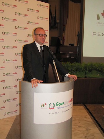 PESCARA – Il Ministro per l’Attuazione del Programma di Governo, l’onorevole Gianfranco Rotondi ha aperto ieri pomeriggio, nella Sala consiliare del Comune di Pescara, l’appuntamento con ‘GovernIncontra’ promosso dalla Prefettura di Pescara. Presenti le massime Autorità cittadine, tra cui il sindaco di Pescara Luigi Albore Mascia, il Presidente della Provincia Guerino Testa, il Presidente del Consiglio regionale Nazario Pagano, e poi amministratori della provincia, il Presidente della Camera di Commercio Daniele Becci e il vescovo Tommaso Valentinetti.