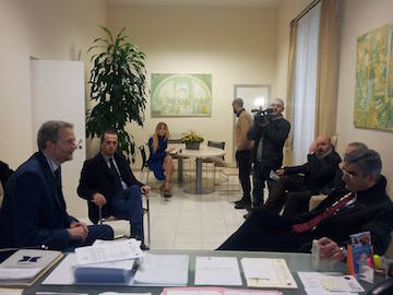 Una volta concluso il sopralluogo, nella sala Figlia di Iorio di palazzo dei marmi si è svolta una riunione con tutti i dirigenti (presente un rappresentante per ogni istituto) scolastici degli istituti superiori della provincia di Pescara. Al tavolo insieme al presidente Di Marco, la dirigente del settore edilizia scolastica Nicoletta Bucco, i consiglieri Franco Galli, Ennio Napoletano e Leila Kechoud, nonché il segretario generale Antonello Langiu. All’incontro hanno preso parte anche alcuni studenti dell’Alberghiero, su invito del presidente della Provincia, che in mattinata avevano protestato sotto la sede di palazzo dei marmi.