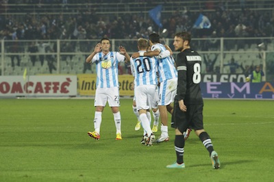 PESCARA (3-5-2): Perin; Cosic, Bochetti, Capuano (dal 1′ st Caprari); Zanon, Nielsen, Quintero, Cascione, Modesto; Jonathas (dall’8′ st Weiss), Abbruscato (dal 20′ st Vukusic). A disp: Pelizzoli, Falso, Romagnoli, Soddimo, Bjarnason, Celik, Balzano, Togn. All. Stroppa