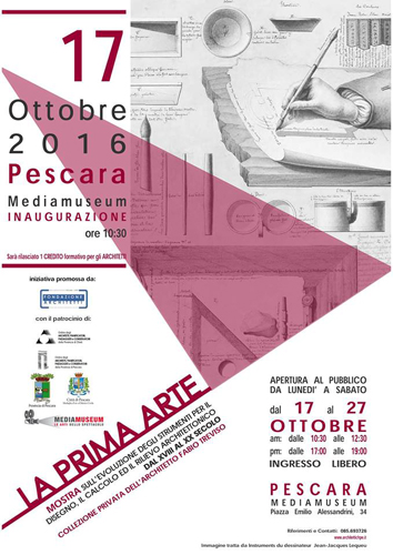 o a Chieti abbiamo deciso di riproporre la mostra anche a Pescara, per dare così l’opportunità ai professionisti, gli appassionati o i semplici curiosi di fare un viaggio nella “Prima Arte”, tra gli strumenti per il disegno, il calcolo e il rilievo architettonico dal XVIII al XX secolo».