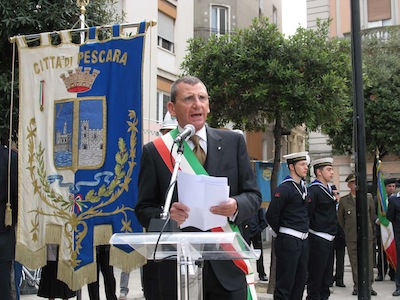 PESCARA – Si è svolta ieri a Pescara, in piazza Garibaldi dinanzi al monumento ai Caduti, la cerimonia del 25 aprile . Presenti molte Autorità, tra cui il sindaco di Pescara Luigi Albore Mascia, il Presidente della Provincia Guerino Testa, il Prefetto Vincenzo D’Antuono, l’onorevole Vittoria D’Incecco, il Presidente del Consiglio comunale Roberto De Camillis, gli assessori comunali Giovanna Porcaro e Marcello Antonelli, i consiglieri comunali Massimo Pastore, Salvatore Di Pino e Andrea Salvati, l’abate generale Don Francesco Santuccione, oltre a tutte le Autorità Militari e ai rappresentanti delle Associazioni Combattentistiche e d’Arma, tra cui anche i reduci dei campi di concentramento. Ma soprattutto c’erano tantissimi cittadini che hanno assistito alla celebrazione.