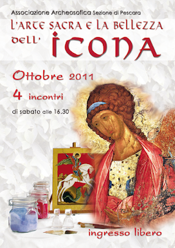 PESCARA – Partirà sabato,8 ottobre, un ciclo di Conferenze dal titolo: “L’ARTE SACRA E LA BELLEZZA DELL’ICONA”. Gli incontri si terranno presso la Sala Consiliare del Consiglio di Circoscrizione “COLLI- VILLA FABIO”, via di Sotto 8/12 65125 – Pescara secondo il seguente programma: