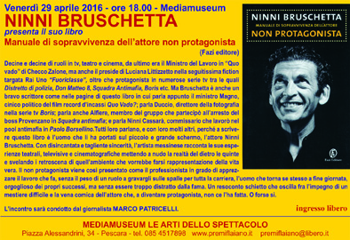 PESCARA – Il Mediamuseum di Pescara ha l’onore di ospitare venerdì 29 aprile alle ore 18 il popolarissimo attore televisivo, cinematografico e teatrale Ninni Bruschetta autore del libro “Manuale di sopravvivenza dell’attore non protagonista” edito da Fazi.