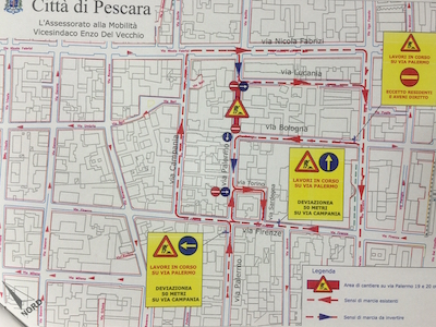 PESCARA – Nelle giornate del 19 e 20 di ottobre dalle 8 alle 18 e comunque fino alla fine degli interventi, l’ordinanza n. 545 firmata dal sindaco Marco Alessandrini istituisce il divieto di transito sul tratto di via Palermo compreso tra via Bologna e via Lucania e l’inversione del senso di marcia con direzione mare-monti, nonché il divieto di sosta su ambo i lati, sul tratto di via Palermo compreso tra l’incrocio con via Fabrizi e l’intersezione con via Torino. Il tutto per consentire l’esecuzione di lavori di scavo che consentiranno il ripristino della rete fognante di un edificio ubicato sulla via.