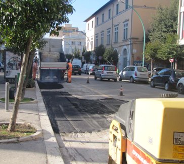 PESCARA – Sono iniziati ,ieri mattina i lavori di rifacimento del manto d’asfalto in via Conte di Ruvo che è stata perciò parzialmente chiusa al traffico . Gli operai del Comune alle 6 in punto hanno iniziato a lavorare lungo l’asse viario, che, grazie alla capillare opera di informazione condotta dall’amministrazione comunale nei confronti degli automobilisti, è rimasto quasi completamente sgombro, con la deviazione temporanea anche degli autobus della Gestione Trasporti Metropolitani. Inoltre sono iniziate le operazioni di allestimento del cantiere in via Ferrari, nel tratto compreso tra via del Circuito e via Rigopiano dove si andrà a realizzare la nuova conduttura per il trasporto dell’acqua potabile sino alla stazione ferroviaria centrale.